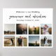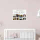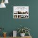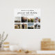 Cartaz de boas-vindas de casamento moderno com um design branco simples e minimalista com uma colagem de fotos de oito das suas fotos favoritas. Acima das suas fotos está "Bem-vindos ao nosso casamento" junto com os seus nomes em uma escrita elegante e a data do casamento.