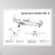 Supermarino Spitfire Mk. II - Blueprint do avião. Planos de desenho ou esquemas com contornos design para a Segunda Guerra Mundial ou a Mk de Fogo Supermarinho da Segunda Guerra Mundial. II lutador da Batalha do Reino Unido