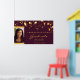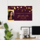 Um fundo burgundy chic com estrelas douradas falsas caindo, pingando. Personalize e adicione sua própria foto do formando. Texto; Parabéns! O texto: Formando e o nome são escritos com um script de estilo moderno, escrito à mão.
