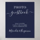 Livro de Registro de Convidados de Fotos ! Caligrafia simples e elegante, este sinal de livro de registro de convidados de fotos de casamento apresenta livro de registro em caligrafia elegante, e tire uma foto, coloque-a no livro e deixe uma mensagem para. Personalize este sinal de casamento elegante com seus nomes! DIREITOS AUTORAIS © 2020 Judy Burrows, Black Dog Art - Todos os Direitos Reservados. Poster de Fotografia de Noivado Convidados Caligrafia Moderna Azul Marinho