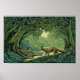 Poster Fox in a forest with woodcut textures