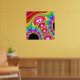 Este poster apresenta a minha "Viagem de Groovy" fractal com legal formas retrógradas dos anos 70 e cores brilhantes de rosa claro, vermelho, laranja, amarelo, azul, verde, roxo e preto.