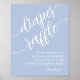 Um poster azul de fralda chá de fraldas de menino apresenta suas direções e o obrigado em letras brancas chic. IMPRESSO e/ou DESCARREGAMENTO INSTANTÂNEO. Combinando convites e mais designs em nossa loja.