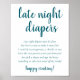 Poster Fraldas Noturnas Simples | Chá de fraldas Teal Aqu