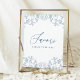 Tornar o seu chá de panela inesquecível com este elegante Poster de Favor do Chá de panela Azul Chinoiserie Floral. Este poster de inspiração vintage apresenta um incrível design floral azul de chinoiserie que irá adicionar um toque de sofisticação ao seu evento. Este poster distinto impressiona certamente seus convidados com seus detalhes intrincados e o motivo real de inspiração francesa. A paleta azul suave lhe dá um olhar refinado e romântico que celebra o dia especial da noiva. Coloque-o num cavalete perto dos favores que você está dando aos seus adoráveis convidados.
