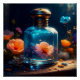21 de março é Dia da Fragrância. A vida de uma garrafa de perfume com pêssego e flores azuis.