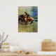 Frederic Remington era um pintor americano, ilustrador, escultor e escritor mais conhecido por sua arte representando os cowboys, soldados e Americanos nativos do Velho Oeste. Nativo de Canton, Nova Iorque, Remington encontrou inspiração nestes assuntos desde cedo. Ele amava a ideia da fronteira e viajava para o oeste muitas vezes. Ele admirava muito os brutais e heroicos cowboys e soldados que ali conheceu, ouvindo suas histórias e acompanhando suas vidas em suas visitas como jornalista/ilustrador. Nessas viagens, Remington pegou uma câmera e fez suas próprias fotografias, não como arte, mas como notas. Ele carregava cadernos e esboçava tudo de horizontes distantes aos detalhes de vincos em botas de couro. Trabalhou para as revistas de excelente dos anos 1880 e 1890 e produziu mais de 3 mil quadros e desenhos assinados. A maioria delas eram ilustrações, mas muitas foram feitas como arte quando ele se afastou do mundo editorial e realizou arte domada. Esta imagem é chamada "O Stampede" e retrata um vaqueiro galopante tentando transformar um rebanho de gado longo no meio de uma tempestade relâmpago e chuvas fortes.
