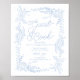 Designed for grandmillennial brides and those drawn to Old Money luxury aesthetics, this sign blends delicate floral detail with soft French Blue tones for an heirloom-inspired reception look. Perfect for garden ceremonies, tented receptions, or formal ballroom weddings. Pair with ivory linen, blue hydrangea centerpieces, and silver or acrylic guest books for a cohesive display. Personalize to coordinate with your full suite.