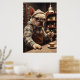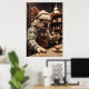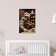 Este hilário poster apresenta um Bulldog Francês em forma de barista cheio, balançando uma colmeia, suspensórios, camisa de flanela verde e branca, e óculos grossos. Ele está atrás do bar de café, focado a laser à medida que despeja arte perfeita em café — leite congelado em uma pata, xícara de café expresso na outra. Sua expressão de olhos largos mostra um pouco demais de cafeína. O quadro atrás dele lista bebidas como "Latido Roast" e "Pele-rotto". É uma impressão obrigatória para amantes de café e fãs de cachorro.