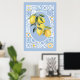 Poster Fruta de limão, azulejos azuis inspirados na Europ