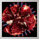 Uma ótima madrugada, rubi, uma nova fruta de granada fatia em fundo preto.
