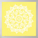 Esta mandala branca senta-se num fundo amarelo calmo. As cores são felizes e pacíficas. Parte da coleção Brosya Mandala.
