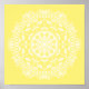 Esta mandala branca senta-se num fundo amarelo calmo. As cores são felizes e pacíficas. Parte da coleção Gwias Mandala.