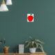 Você está procurando um tema de fruta? Esta poster apresenta uma maçã vermelha com uma folha verde.