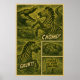 Esta intensa ilustração retrógrada em estilo cômico captura uma dramática cena da selva onde uma zebra escapa por pouco das mandíbulas mortais de um crocodilo em meio a esconderijos hippos. Com visuais ousados e texto impressionante como "CHOMP!" e "CROSS AT YOUR PRÓPRIO RISCO", esta design evoca o perigo e o caos da natureza. A paleta colorida e o olhar desenhado à mão lhe dão um apelo nostálgico, mas emocionante, aos fãs da vida selvagem, dos temas safari ou da arte retrô da aventura. Ideal para amantes de os animais, colecionadores de arte cômica e aqueles atraídos por ilustrações dramáticas da natureza.