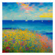 Soldadura marítima 08. Bonito flores coloridas, céu azul, mar azul, iates à vela e outras coisas encontradas na costa.