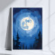 Poster Full Moon | Night Sky Forest Watercolor Painting