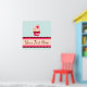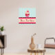 Poster com cupcake cor-de-rosa e cereja sobre fundo listrado azul de menta.