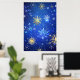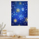 Poster Fundo Azul XMAS com Flocos de Neve Ouro