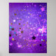 Fundo de faturas violetas com estrelas douradas e azuis. Fundo com estrelas.