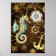 Poster Fundo de madeira com cavalo de mar mecânico