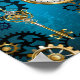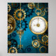 Turquesa, texturizada, fundo steampunk com latão e engrenagens douradas, chave prateada e relógio. Estilo Steampunk.