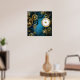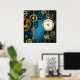 Turquesa, texturizada, fundo steampunk com latão e engrenagens douradas, chave prateada e relógio. Estilo Steampunk.