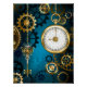 Turquesa, texturizada, fundo steampunk com latão e engrenagens douradas, chave prateada e relógio. Estilo Steampunk.
