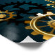 Turquesa, texturizada, fundo steampunk com latão e engrenagens douradas, chave prateada e relógio. Estilo Steampunk.