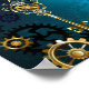 Poster Fundo de turquesa Steampun com engrenagens