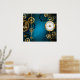 Turquesa, texturizada, fundo steampunk com latão e engrenagens douradas, chave prateada e relógio. Estilo Steampunk.