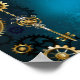 Turquesa, texturizada, fundo steampunk com latão e engrenagens douradas, chave prateada e relógio. Estilo Steampunk.
