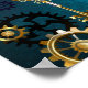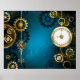 Turquesa, texturizada, fundo steampunk com latão e engrenagens douradas, chave prateada e relógio. Estilo Steampunk.