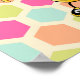 Uma abelha de mel feliz com a sua colher de mel. Um fundo legal em forma de colmeia hexágona em cores de vintage de rosa, azul, laranja e verde.