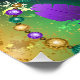 Fundo de grãos de cereais, iridescentes, textualmente, com manchas roxas, amarelas e verdes, decoradas com penas e miçangas brilhantes. feriado Mardi Gras.