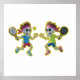 Poster Funny Cartoon Skeletons Playing Padel Tennis – 3D