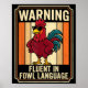 Poster Funny Chicken Rooster Humor Warning Fluent In Fowl