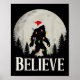 Poster Funny Christmas Bigfoot Santa Hat Moon Sasquatch K