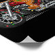 Poster Funny Christmas Gingerbread Man Biker Riding A Mot
