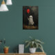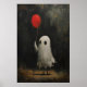 Poster Funny Cute Ghost Holding Red Balloon, Vintage