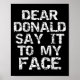 Poster Funny Dear Donald Say It To My Face Election Quote