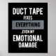 Created especially for the emotionally damaged guy who hasn't lost his sense of humor yet. All you need is a little bit of duct tape, and you'll be good to go! A great way to show off your self deprecating, dry humor style. This funny graphic poster art is perfect for your workshop or man cave.