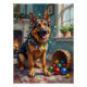 Pôster Funny German Shepherd Tangled in Christmas Lights