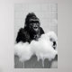 Poster Funny Gorilla Bubble Bath Print, Bathroom Animal
