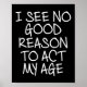 Poster Funny, I See No Good Reason To Act My Age . Joke T