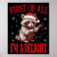 Poster Funny Raccoon First Of All I'm A Delight Merry Chr