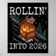 Poster Funny Raccoon Rolling Into 2026 Retro New Year 202