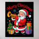 Poster Funny Santa Christmas Design Trumpet Holiday Xmas