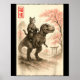 Poster Funny Sumi-e Kawaii Cat Riding Dinosaur Japanese A