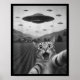 Poster Funny Surprised Ed Cat Selfie With Alien Ufo Cat U